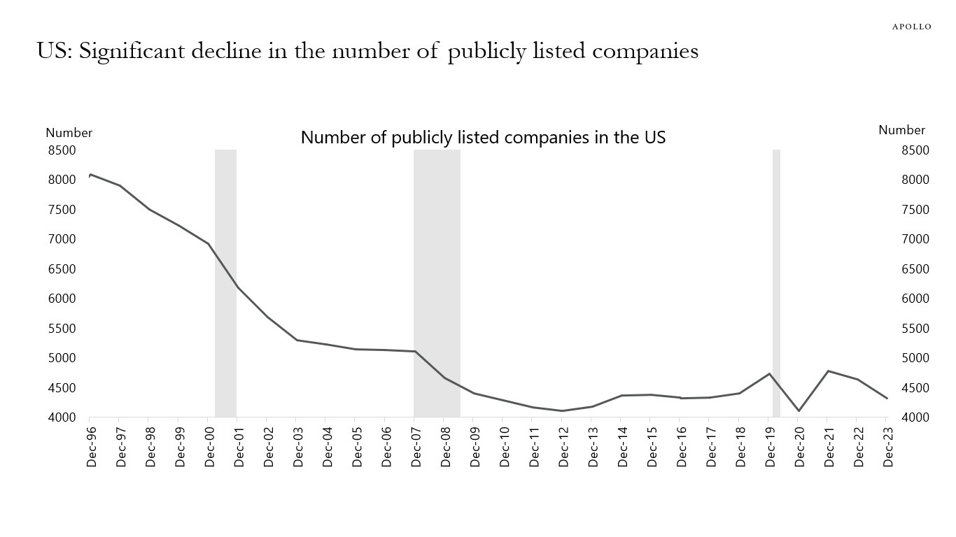 Now, the number of people investing in the market has gone up so maybe it’s just alpha erasure. So it’s not to say there are no alpha generating investments at all. There absolutely have been 10 baggers or more in the public markets, Palantir shot up like crazy. But they’re as few as they’re speculative. All the while the number of public companies even has fallen off a cliff.