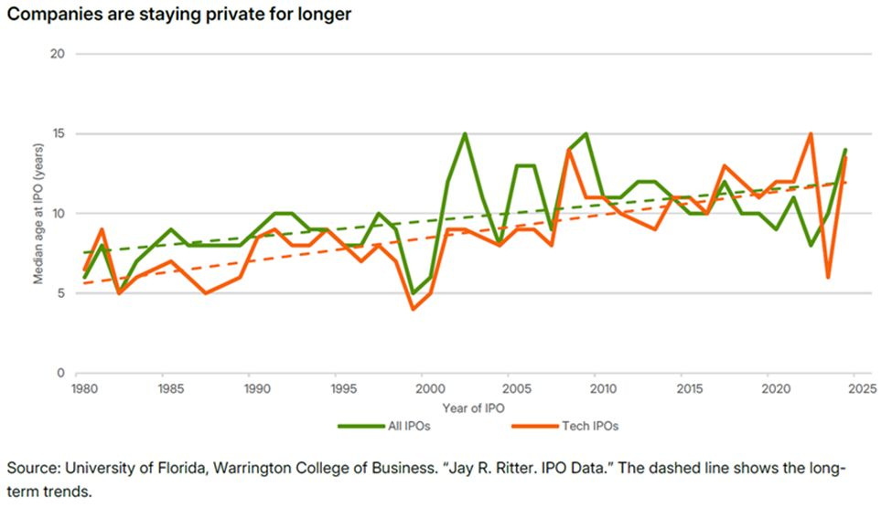 Or, looked at another way, in 1980 the median age of a listed U.S. company was 6 years; today it is 20.